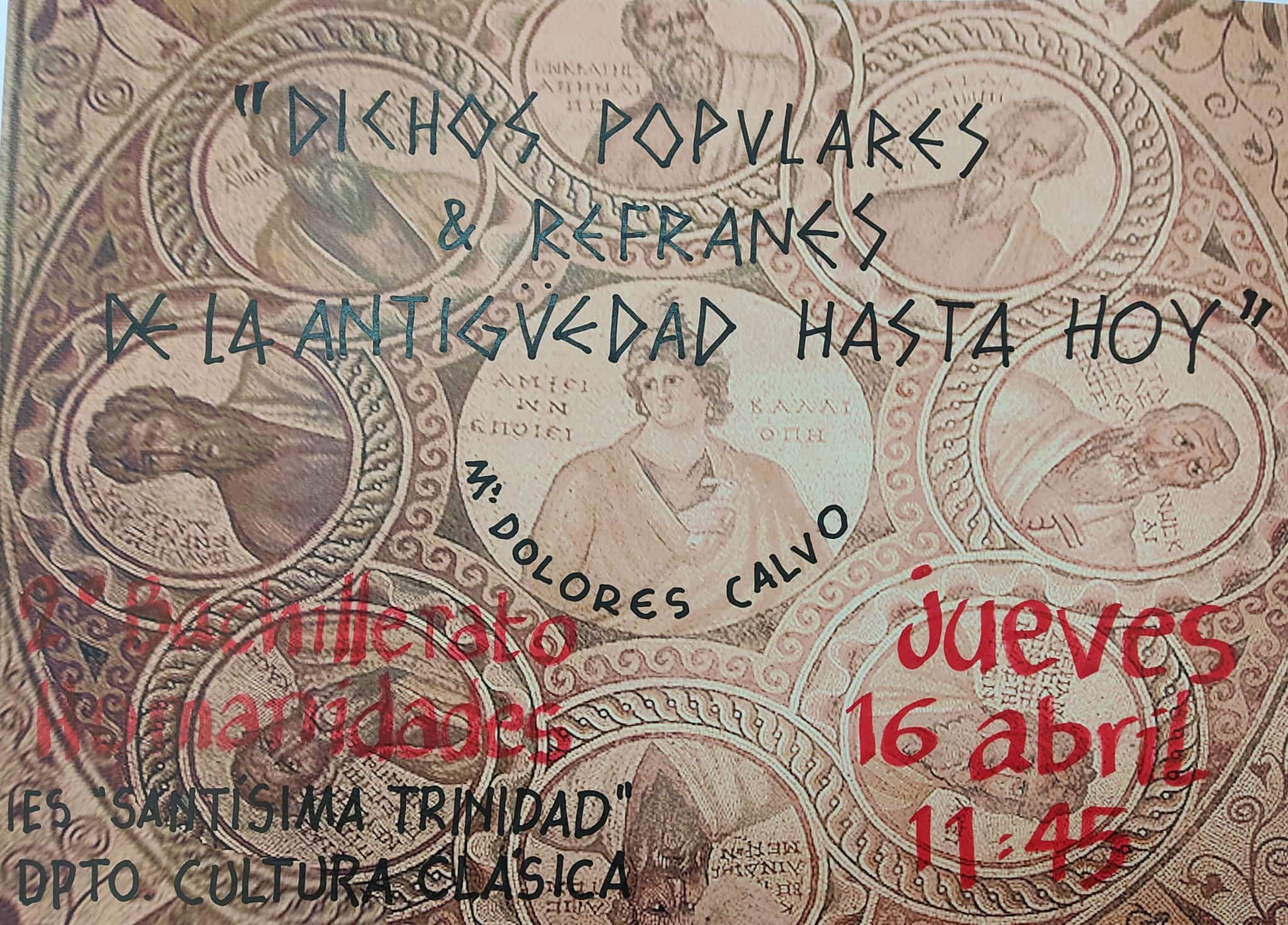 Mª Dolores Calvo ha sido la encargada de dar a nuestro alumnado de Humanidades de 2° de Bachillerato, el jueves 16 de abril, una interesante charla sobre dichos populares y refranes desde la Antigüedad hasta el día de hoy.
