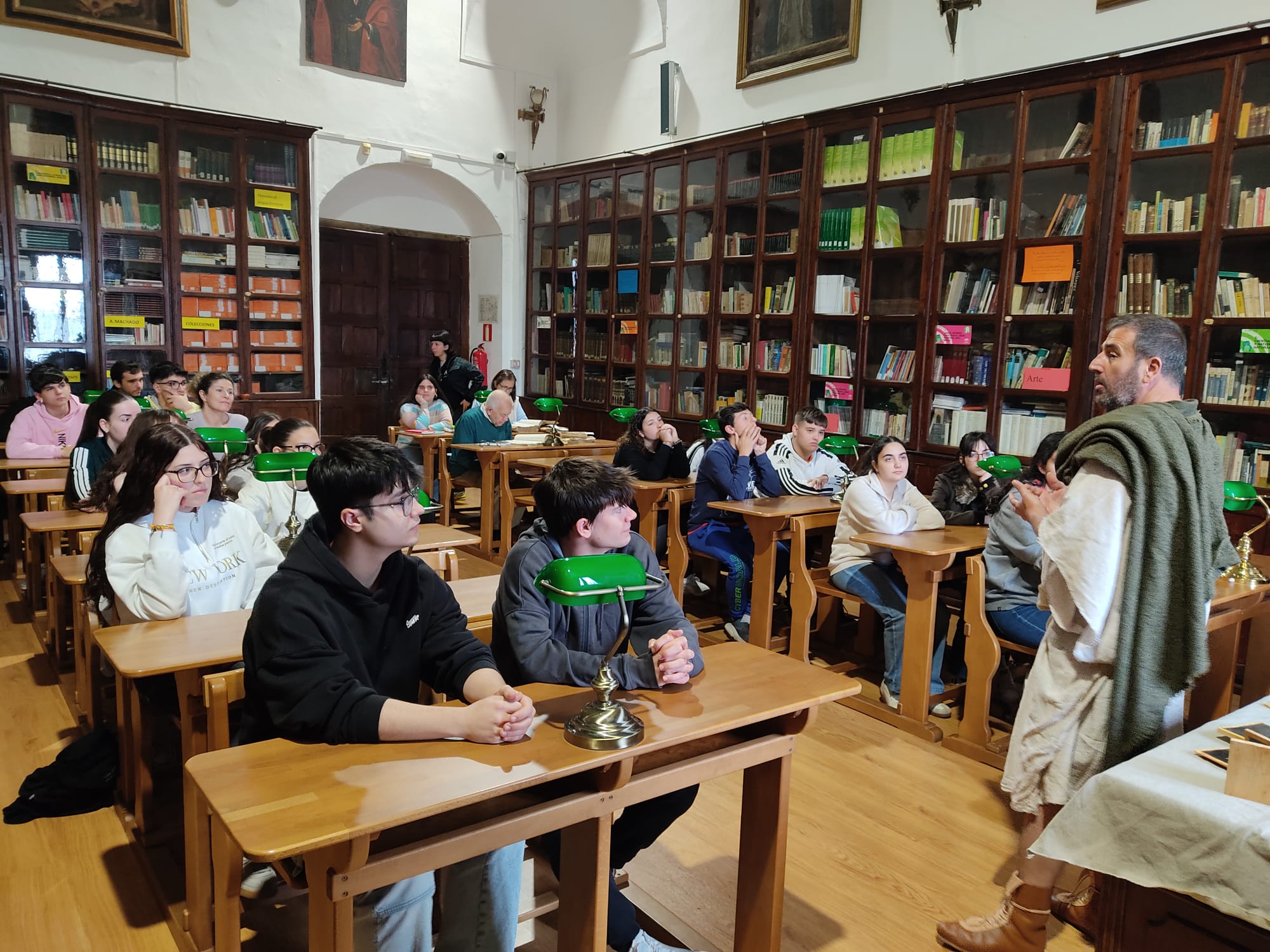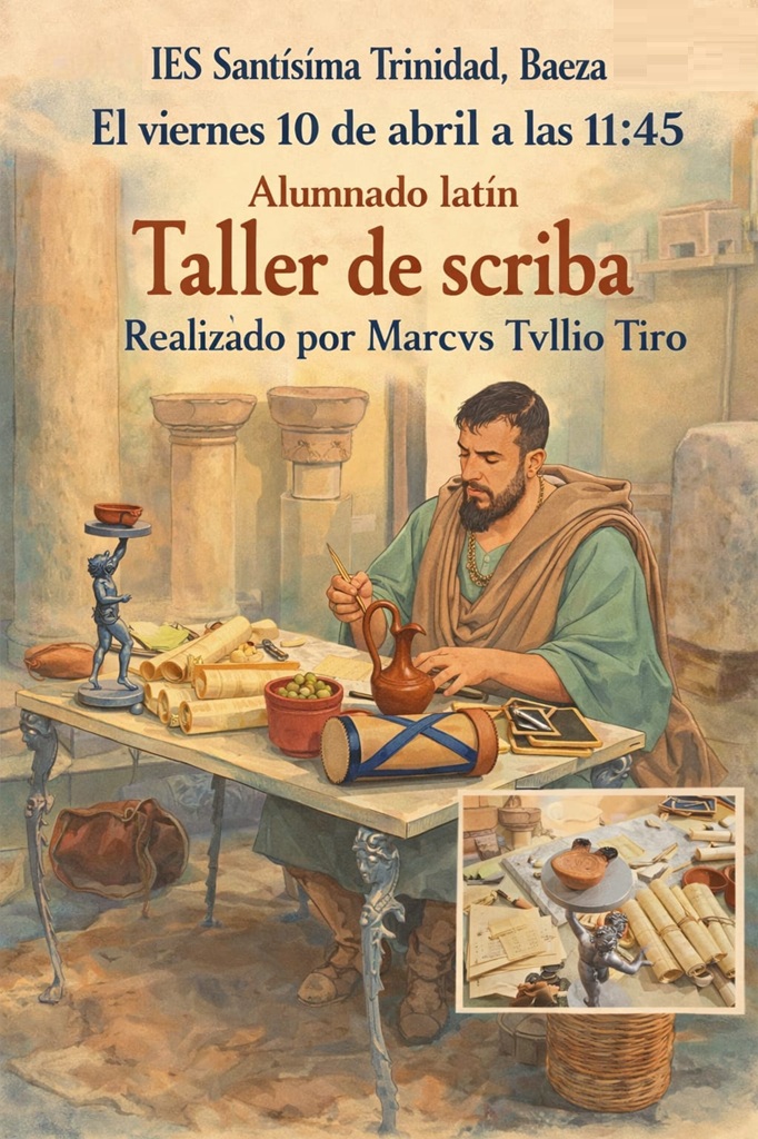 El magister Marcus Tulio realizó el viernes 10, dentro de los actos del Abril Cultural, un magnífico taller de escritura en la biblioteca histórica de nuestro Instituto. Disfrutaron de esta experiencia varios profesores y el alumnado de Latín.